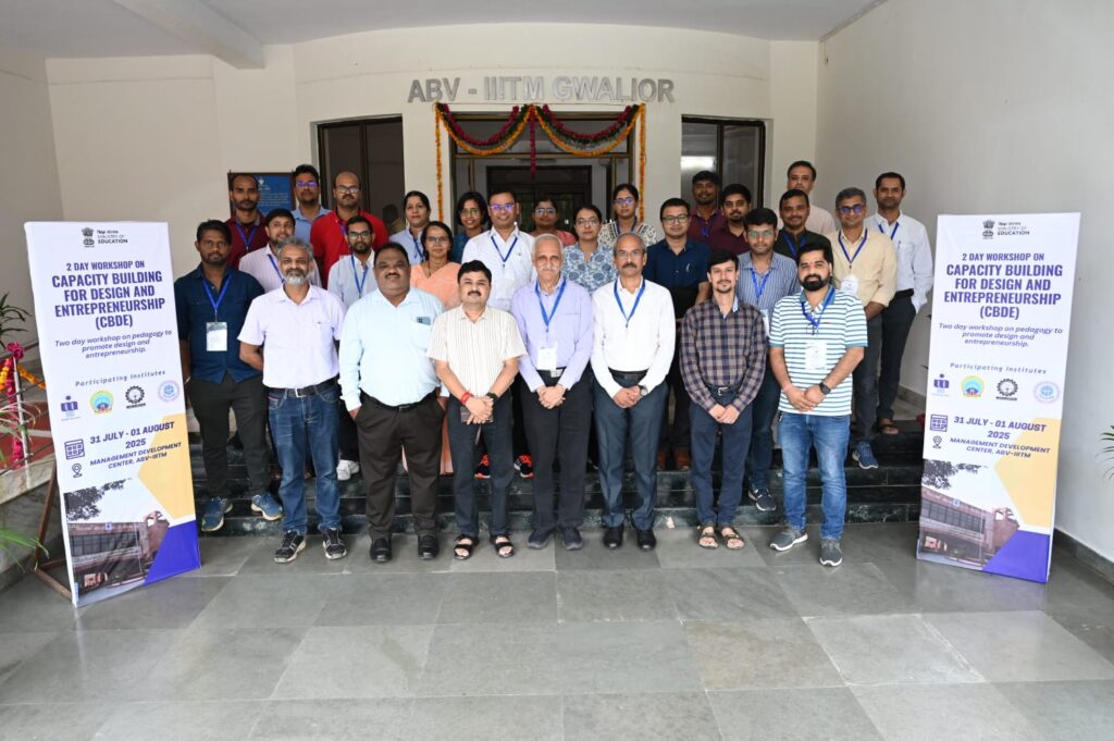 ग्वालियर : डिज़ाइन और उद्यमिता के लिए क्षमता निर्माण (CBDE) कार्यशाला, का अटल बिहारी वाजपयी – इंडियन इंस्टिट्यूट ऑफ़ इनफार्मेशन टेक्नोलॉजी एंड मैनेजमेंट , ग्वालियर में आयोजन किया गया , जिसका उद्देश्य भारत के टीचिंग युवाओं में रचनात्मक सोच, उद्देश्यपूर्ण क्रियान्वयन और सामाजिक योगदान की भावना को विकसित करना था। यह दो दिवसीय कार्यशाला मे शिक्षकों, शोधकर्ताओं, उद्यमियों और छात्रों को एक मंच पर एकत्रित किय।